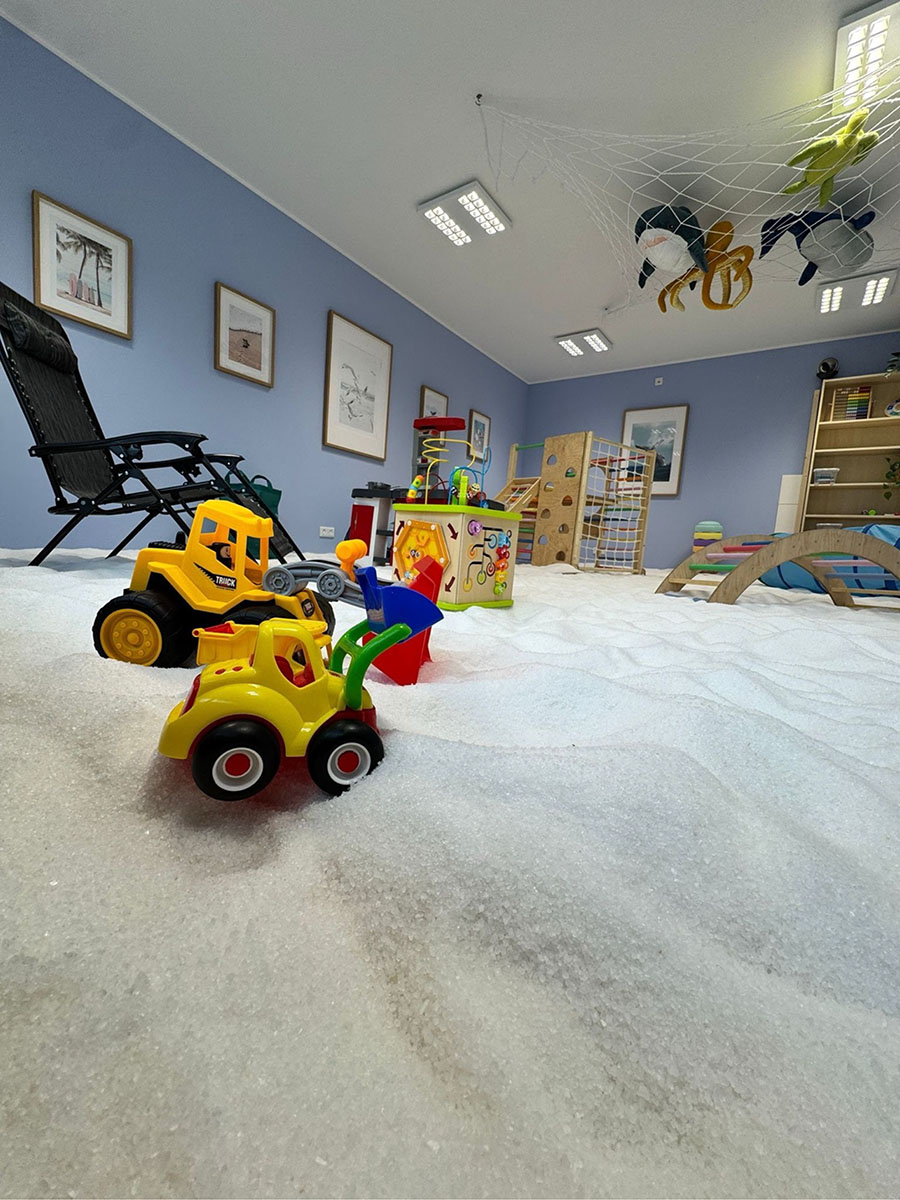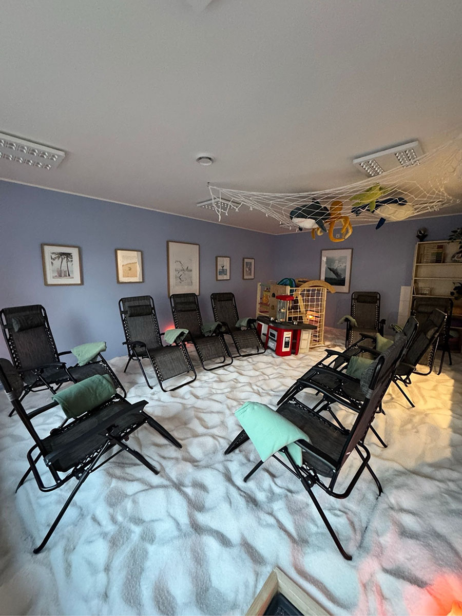 In unserer Inhalationsoase können Kinder auf spielerische Weise die wohltuende Wirkung der Sole (Salzlösung) erleben. Während sie sich frei bewegen und auf Entdeckungsreise gehen, atmen sie die gesundheitsfördernde Luft ganz nebenbei ein.